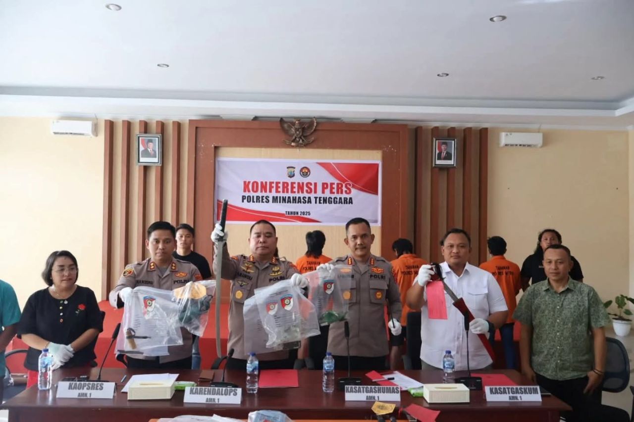 "Terdiri dari 3 orang terkait pelemparan, kemudian 2 orang membawa senjata tajam, dan 5 orang membuat senjata tajam seperti panah wayer dan lain-lain," ujarnya dalam press conference di Mapolres Minahasa Tenggara, Selasa (2/12/2025) siang.